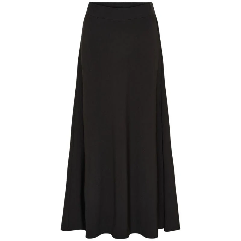 Zwarte rok met elastische band Josia van I Say voor dames. Deze elegante maxirok heeft een tijdloos ontwerp dat moeiteloos aansluit bij iedere stijl. De lichte A-lijn pasvorm zorgt voor een mooie, natuurlijke valling rond het lichaam en benadrukt het vrouwelijke silhouet op een subtiele manier. Dankzij de soepele stof en lichte stretchkwaliteit voelt de Josia rok comfortabel aan en beweegt hij gemakkelijk met je mee. De zwarte kleur geeft het ontwerp een klassieke uitstraling die geschikt is voor elk seizoen.