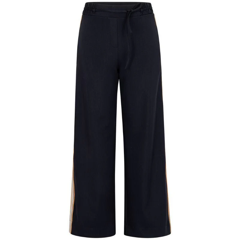Langs de zijnaden is de trousers voorzien van een gekleurde tape die het ontwerp een sportieve twist geeft. De elastische tailleband met drawstring zorgt voor extra draagcomfort en maakt het eenvoudig om de pasvorm af te stemmen op jouw voorkeur. De bonded travelstof kreukt nauwelijks en voelt soepel aan waardoor deze broek ideaal is voor zowel werk als vrije tijd. De binnenbeenlengte van dit model maakt hem bovendien geschikt voor veel lengtes.