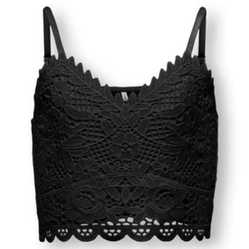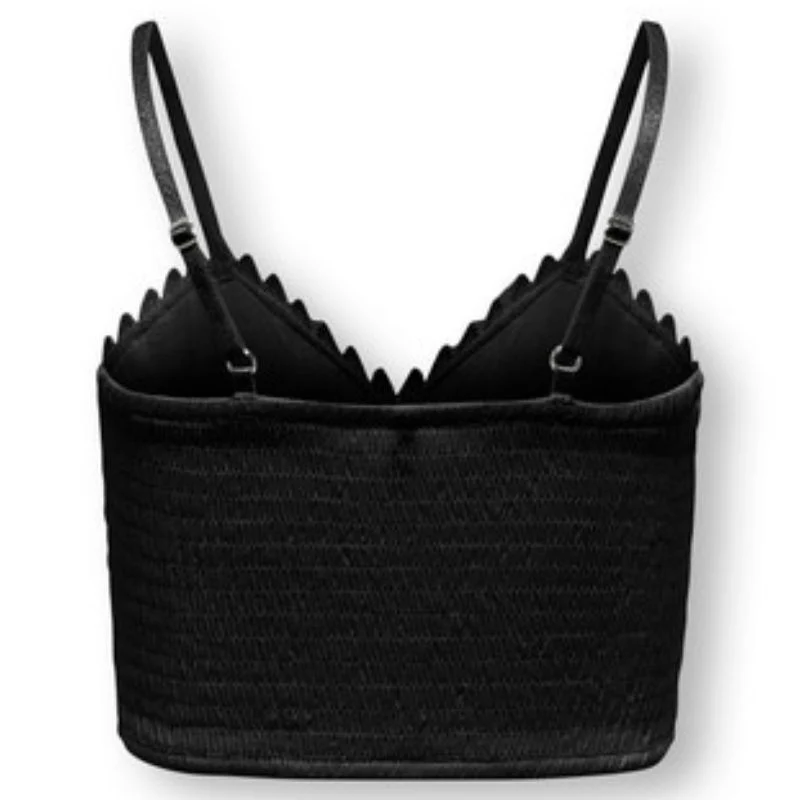 Zwarte strap top Honey van ONLY voor meiden. Deze mouwloze top is voorzien van verstelbare spaghetti bandjes en een v-hals. Gemaakt van zachte, soepelvallende viscose voor ultiem comfort en een mooie pasvorm. Deze top is leuk los of ergens onder te dragen. De top heeft een zwarte kleur met aan de voorkant kanten details.