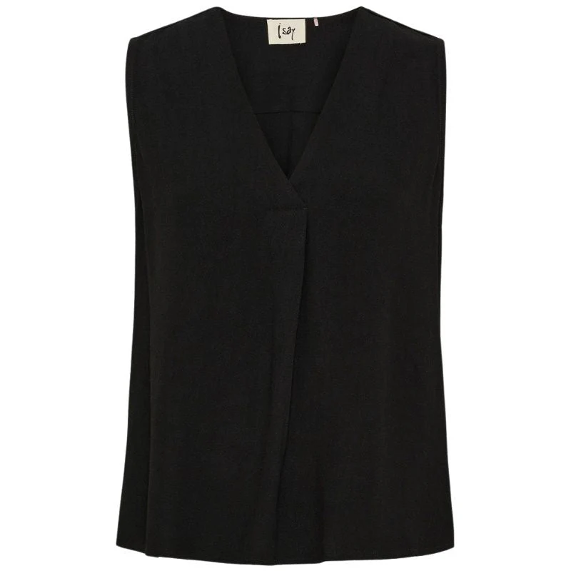 Zwarte top Pearl van I Say voor dames. Deze vrouwelijke top heeft een elegante uitstraling dankzij de mooie zwarte kleur en de subtiele details. De luchtige stof voelt comfortabel aan en valt soepel langs het lichaam. Perfect voor zowel casual als nettere gelegenheden. Combineer hem met een blazer of draag ‘m los voor een chique look.